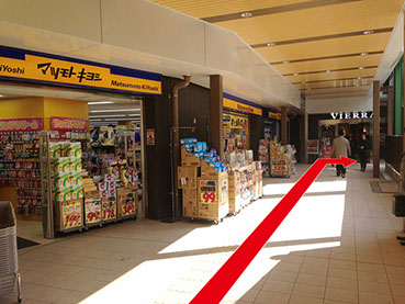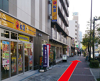 ■マツモトキヨシの前を通り道なり進むと右側に松屋があります。