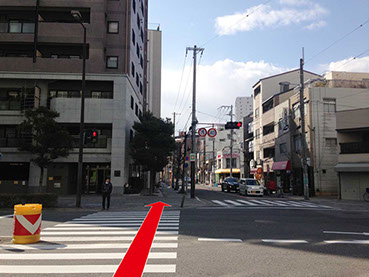 ■ロイヤルホームセンター正面入り口の前の信号を玉造筋を挟んで反対側(西)へ渡ります。
