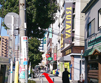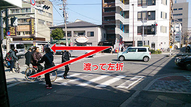 ■玉造筋の信号を「すし半」の方に渡り右折します。