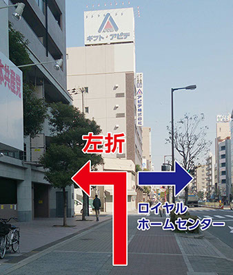 ■「ロイヤルホームセンター」前の交差点を左折します。